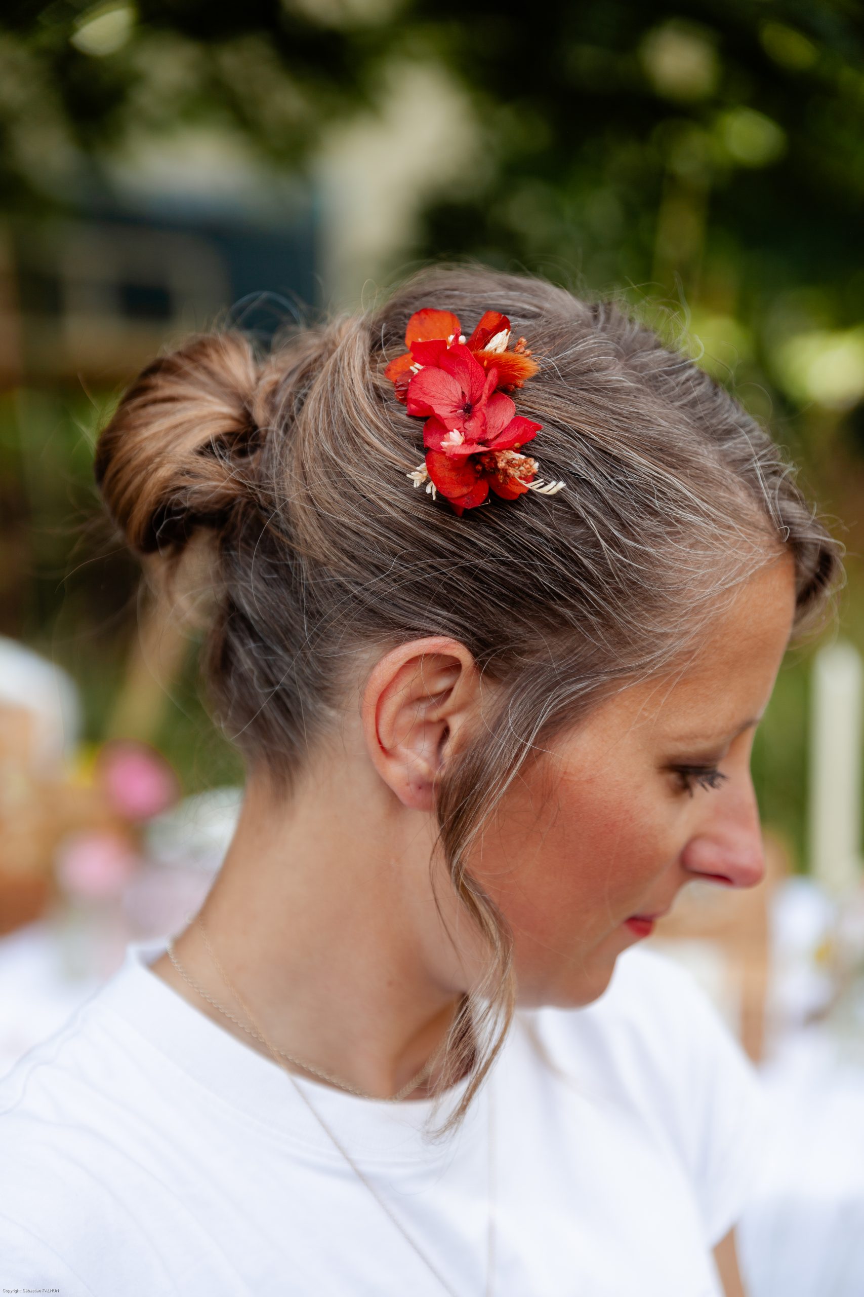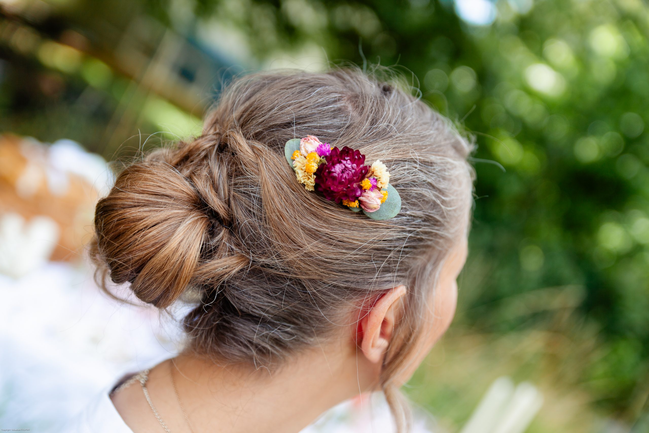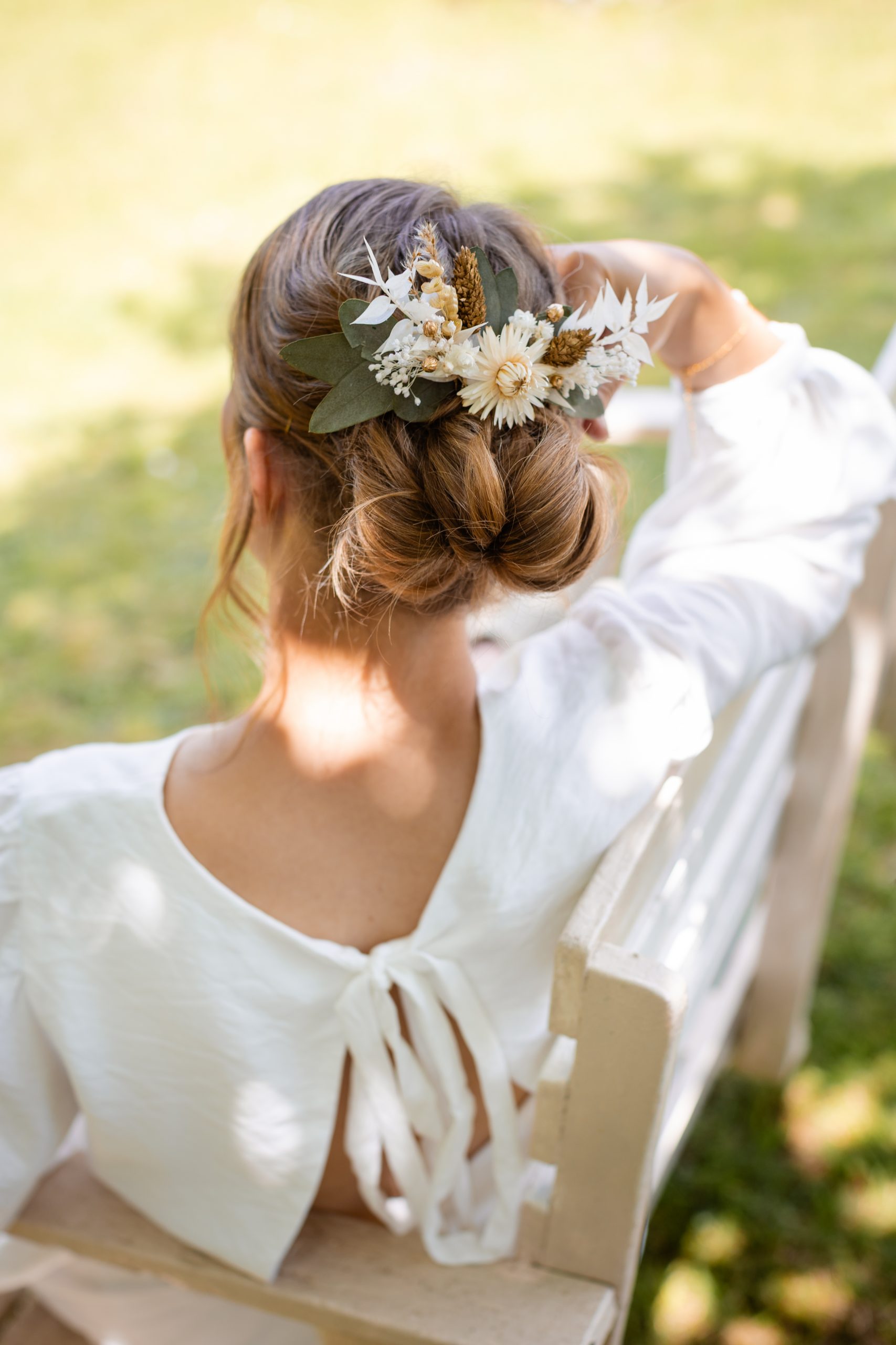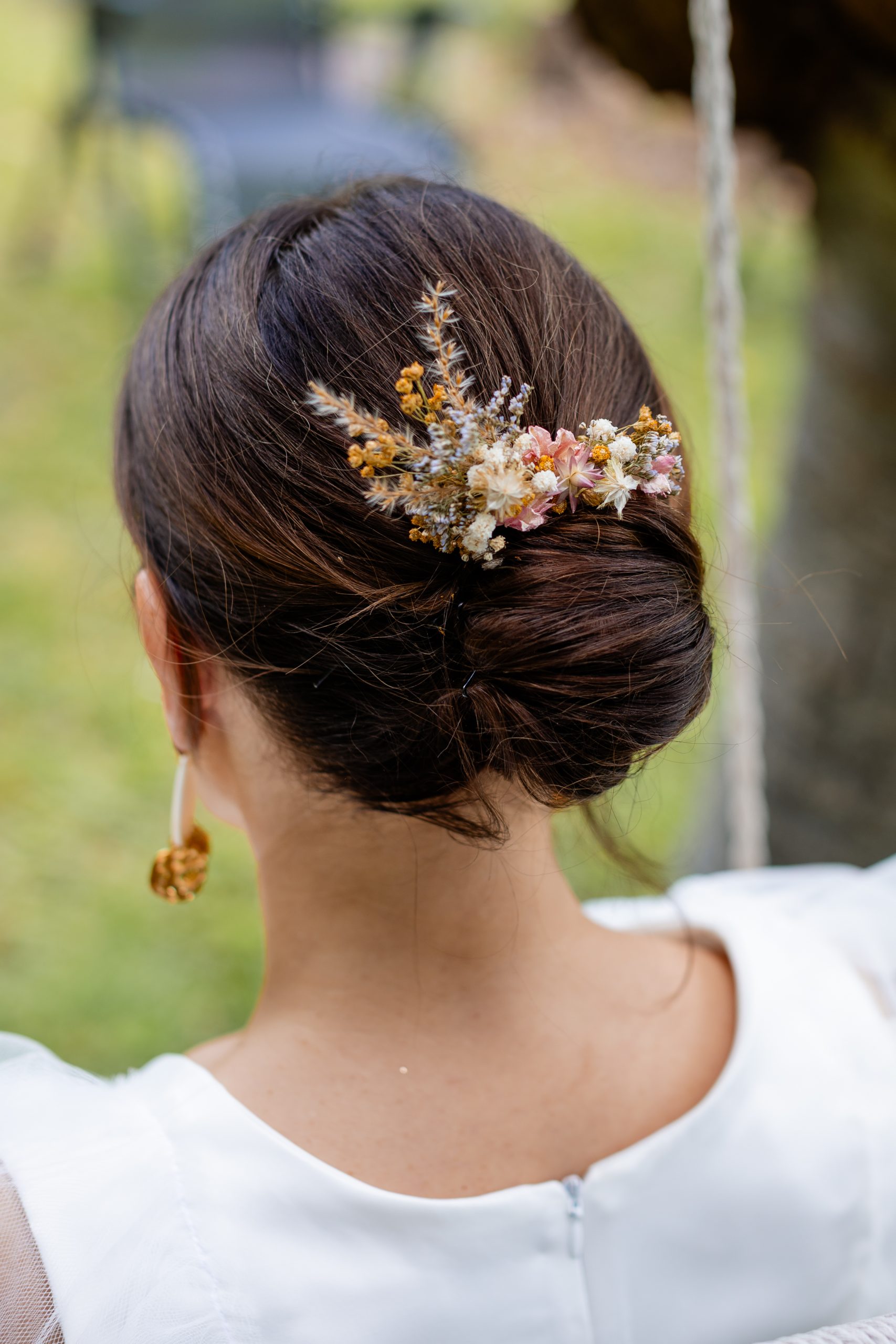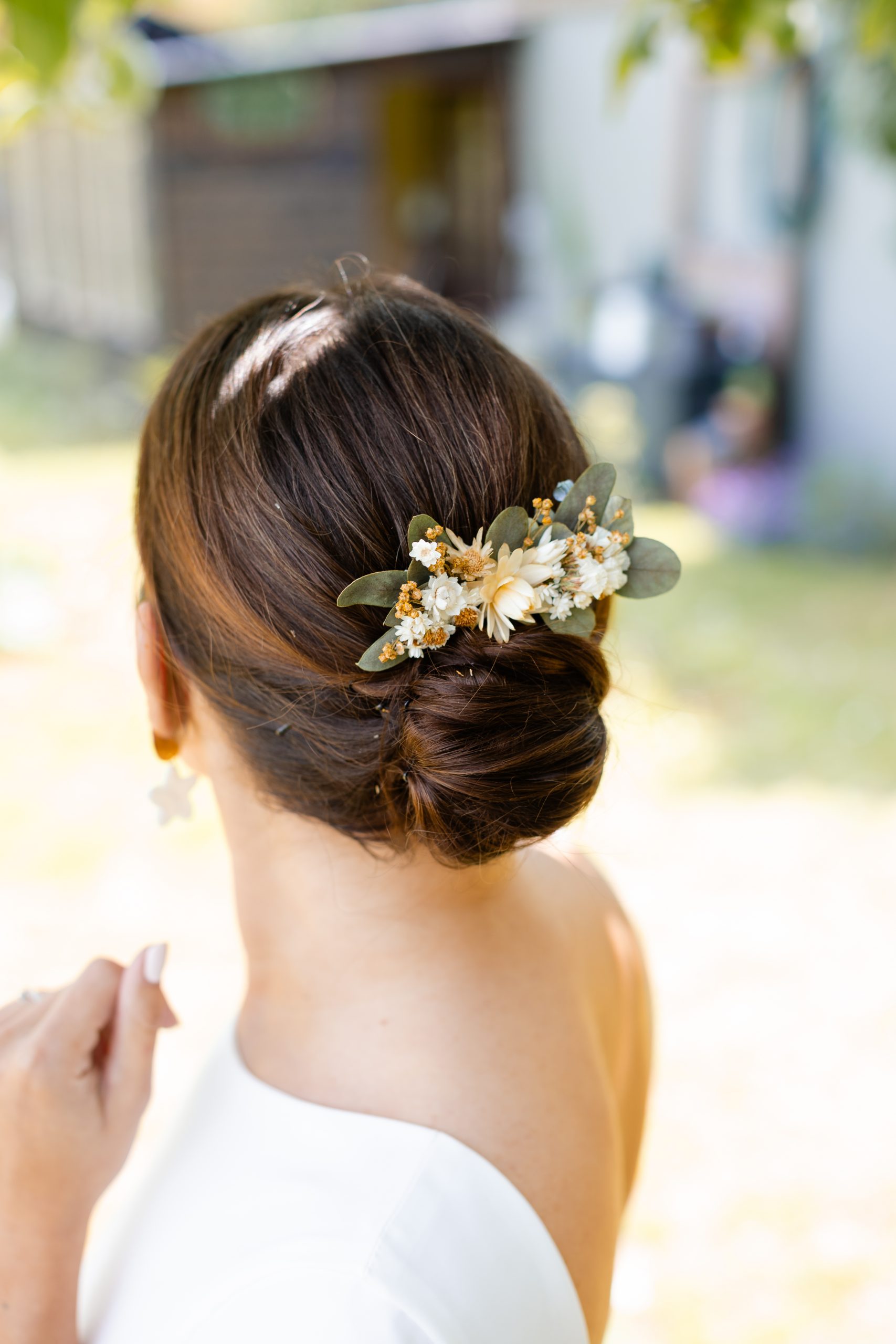 Le peigne fleuri est parfait pour sublimer une coiffure de mariage ou de cérémonie. Facile à porter, il apporte une touche florale élégante et naturelle.